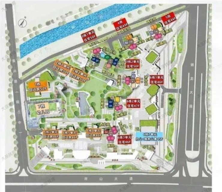 4、小区回迁房比例占比过大,总共2801套,其中商品房1568户,回迁房1233户,可以看出回迁户的占比高达44%,在整个坪山区的商品房住宅当中都属于首例,对于后期的物业管理要求很高,在后期的二手房市场流通上面也可能会有影响。