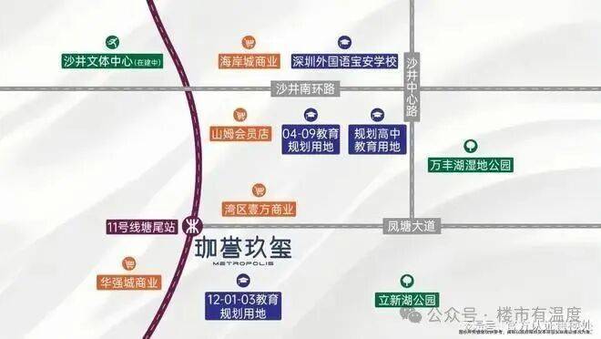步行可达的是地铁11号线塘尾站,衡量地铁配套的价值,不能只看通勤距离,还得考虑线路串联的城市资源,11号线沿途站点都是城市地标级的综合配套,可实现6站到宝中,7站到前海,9站到深圳湾后海,11站到车公庙的快速轨道通行,可以说是“全城精华,一轨直达”。
