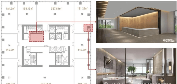 💎预留上下水定位,可设置总裁休息室与卫生间,营造私密空间