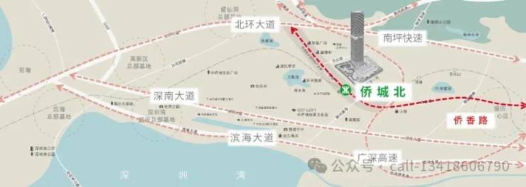 便捷交通-地铁侨城北站D口,四面临路(侨香路为核心区唯一不堵道路)