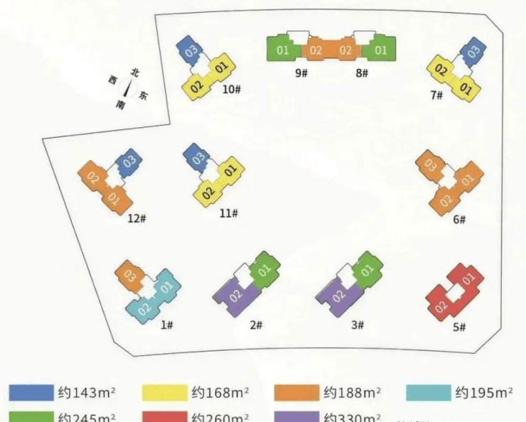 规划总户数约616户,首推1栋3-5-6-7单元,220套,约143-168-188-245-260-330㎡四房和顶楼约488平㎡户型。