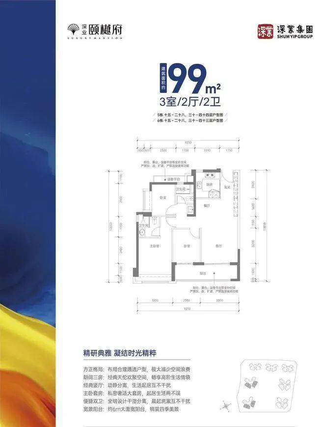 建面约99㎡三房两厅两卫,全南朝向·视野开阔·宽景阳台·目送教育