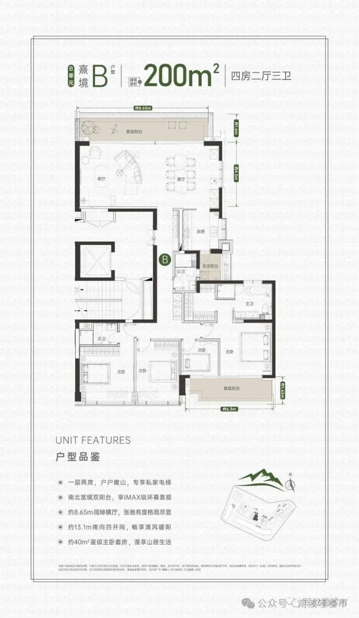 268㎡5房4卫,阅山楼王,两梯两户,专享私家电梯,南北四阳台、270°全景视野,约10.55米横厅,约16.1米南向大4房,备案总价2800-3000万!