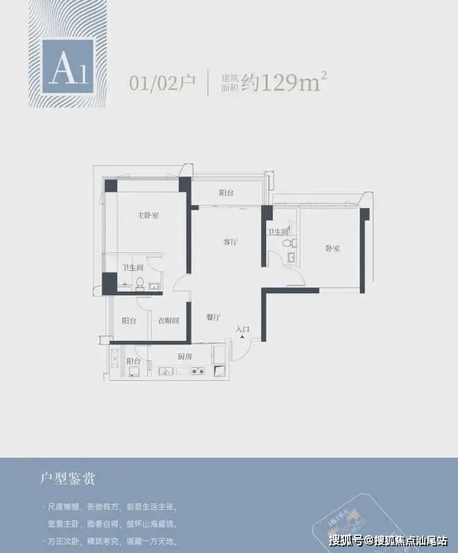 1栋一单元A1、A2户型:面积约为129㎡