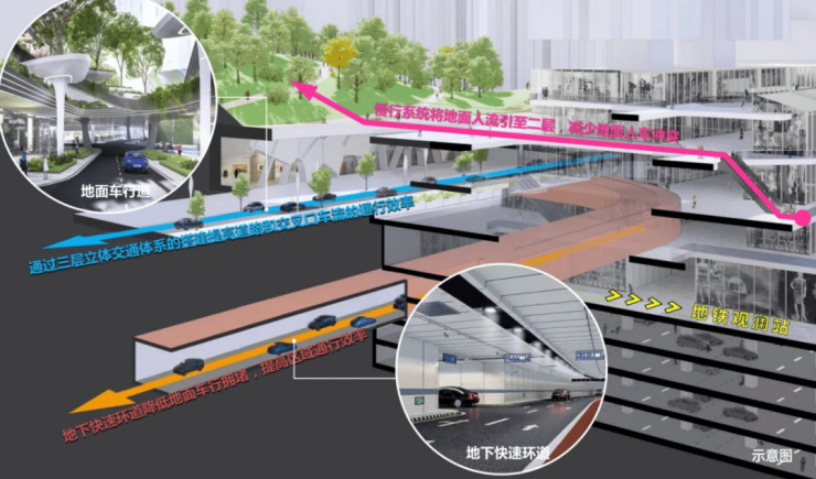 另外,项目独创了3.6KM全通达的空中连廊,不用经过任何马路就能直达商场、地铁站、公园、学校。