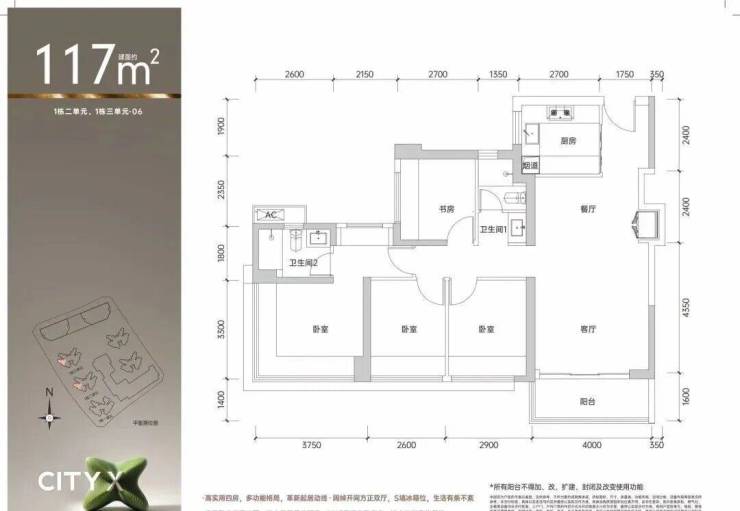 建面约117平四房两厅两卫