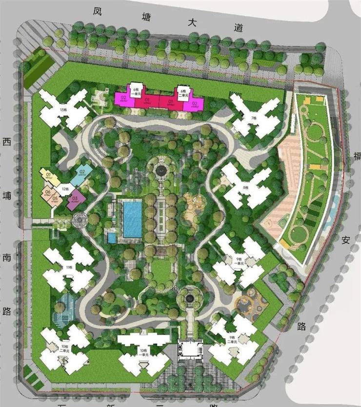 配备全龄子母双泳池、亲子乐园、交流花园,构建全龄活动功能配套,主出入口列阵式礼仪轴线,体现归家仪式感,品质尊崇感