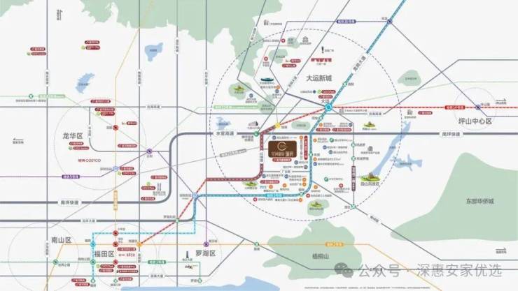 产业方面,项目所在的大运片区定位为“深港国际科教城”,规划投资1800亿元,打造集科创、教育、商务于一体的城市新客厅,与前海、深圳湾等并列为深圳六大城市会客厅。区域内汇聚湾东智芯、横岗光学智造谷、阿波罗未来产业城等科创载体,已吸引近3000家高新企业入驻,形成以智能制造、信息技术为主导的产业集群,未来将发展为深圳东部产业融合核心区,成为继福田、南山之后的“第三增长极”。