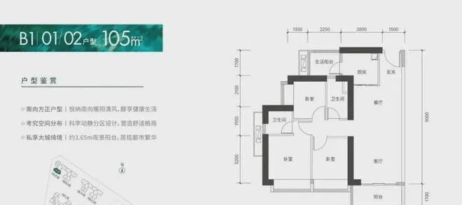 面积段:50㎡的1房1厅,70-85㎡的2房1厅,95-105㎡的3房2卫,120-150-180㎡的4房2卫户型