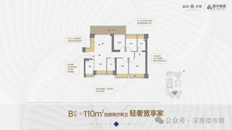 3、远洋天萃是深圳目前为数不多的绿建三星项目,还引进了国际WELL标准建设的新盘,整个小区的建筑质量以及小区很多细节分布做的比较到位,后面的生活层面来说也更有保障性。