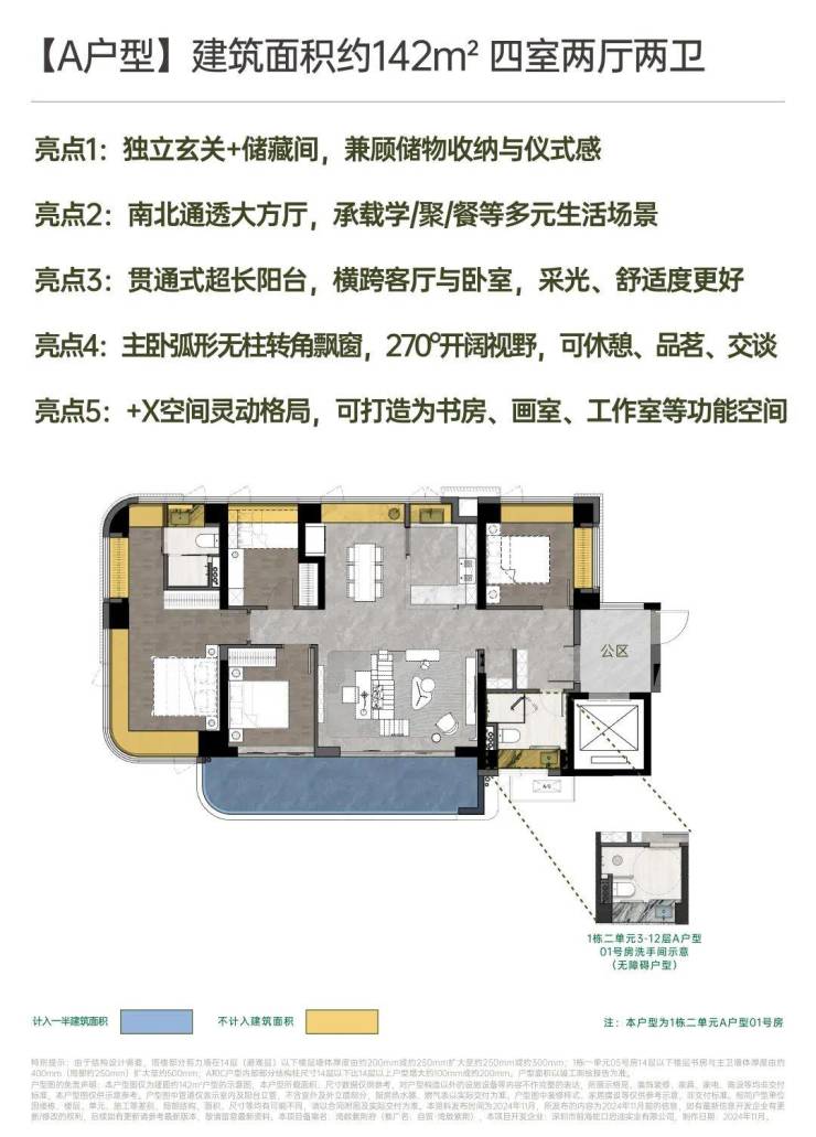 建面约142㎡南北方厅 阔景四房、建面约122㎡五开间全南向四房、建面约121㎡开阔横厅高配四房、建面约111㎡宽厅阔景 灵动三房、建面约96㎡首置优选三房。