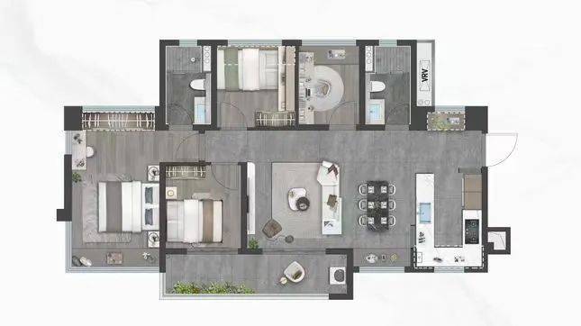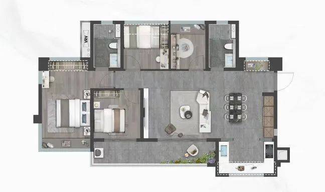 御雲:建面约80㎡三室两厅1.9卫,创新型1.9卫设计,臻享从容生活
