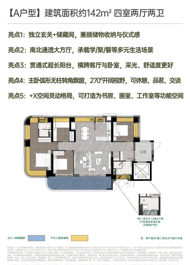 • 建面约142㎡南北方厅 阔景四房;
