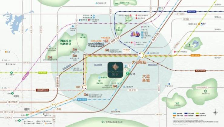 地铁方面,项目距离地铁3号线荷坳站约300米,步行5分钟即可抵达。乘坐地铁1站可达大运站,该站是深圳东部最大的综合交通枢纽,可换乘3号线、14号线、16号线等多条地铁线路。