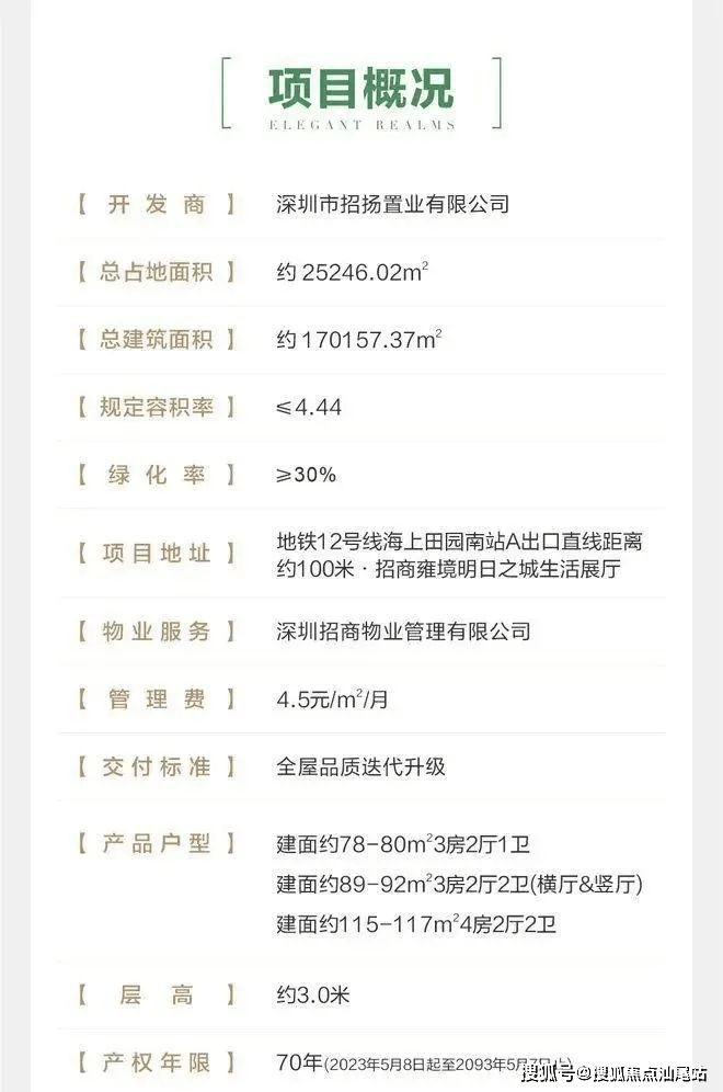 招商会展湾雍境名邸,由招商集团打造,总占地面积约2.52万㎡,总建筑面积约16.95万㎡,计容建筑面积约11.76万㎡,容积率4.3,分2个地块开发,共由6栋总高26-31层高的住宅组成,其中1栋1单元公租房26F,1栋2单元自持租赁30F,1栋3单元/2栋住宅31F,3栋/5栋住宅32F,4栋是1所9班制幼儿园。