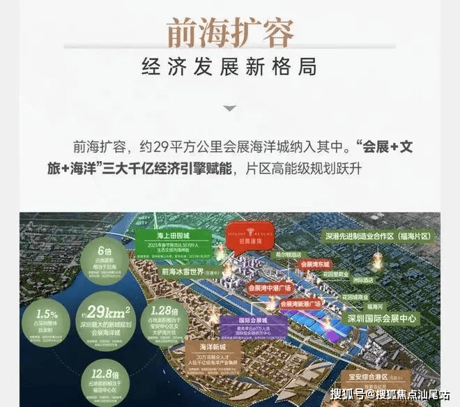 约29平方公里会展新城,湾区战略制高点,会展新城规划布局为“三城一港”,包括国际会展城、海洋新城、会展田园城和综合港区,将成为深圳在全球科技创新中心和海洋中心城市地位的重要战略支撑。