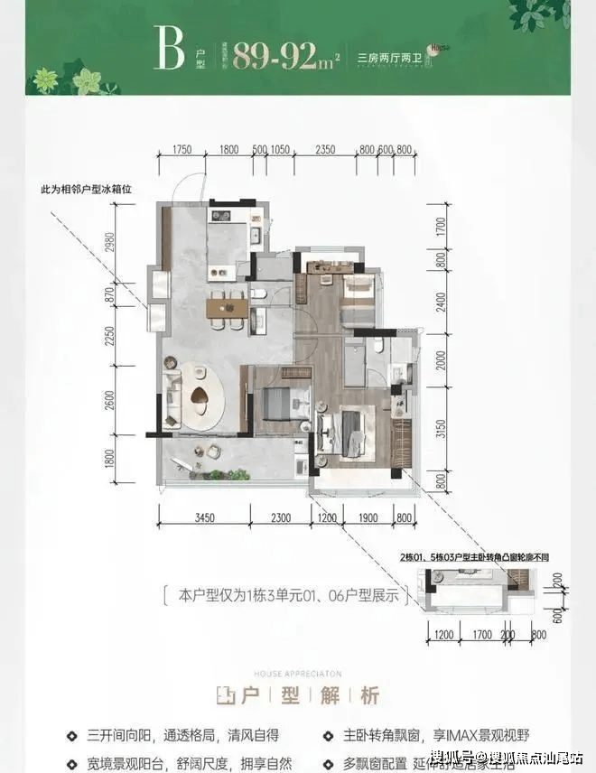 【建面89-92㎡3房2卫】