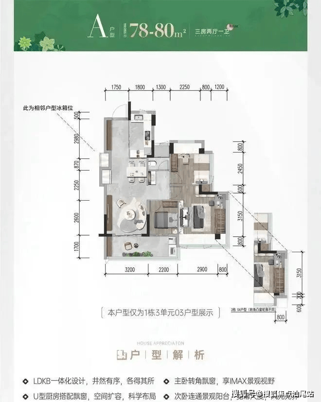 【建面78-82㎡3房1卫】