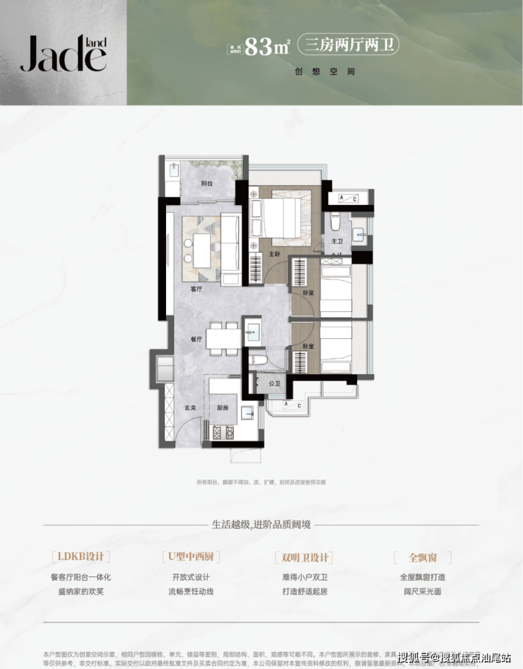 - 83㎡三房两卫(总价345万起):区域稀缺小户型,竖厅设计,预留冰箱位,主卫干湿分离,西北朝向阳台,适合预算有限的首置家庭。