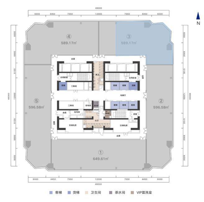 优势配置:每层标配VIP卫浴间、茶水间、超高配比卫生间