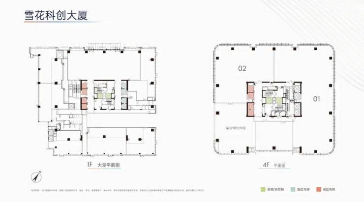 楼高/层高:雪花科创大厦楼高21F,标准层层高约4.5m,润创大厦楼高40F,标准层层高约4.2-4.5m,约4.2-4.5m层高,约12m挑高大堂,跃升企业形象