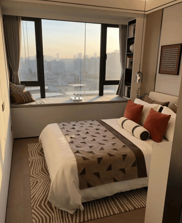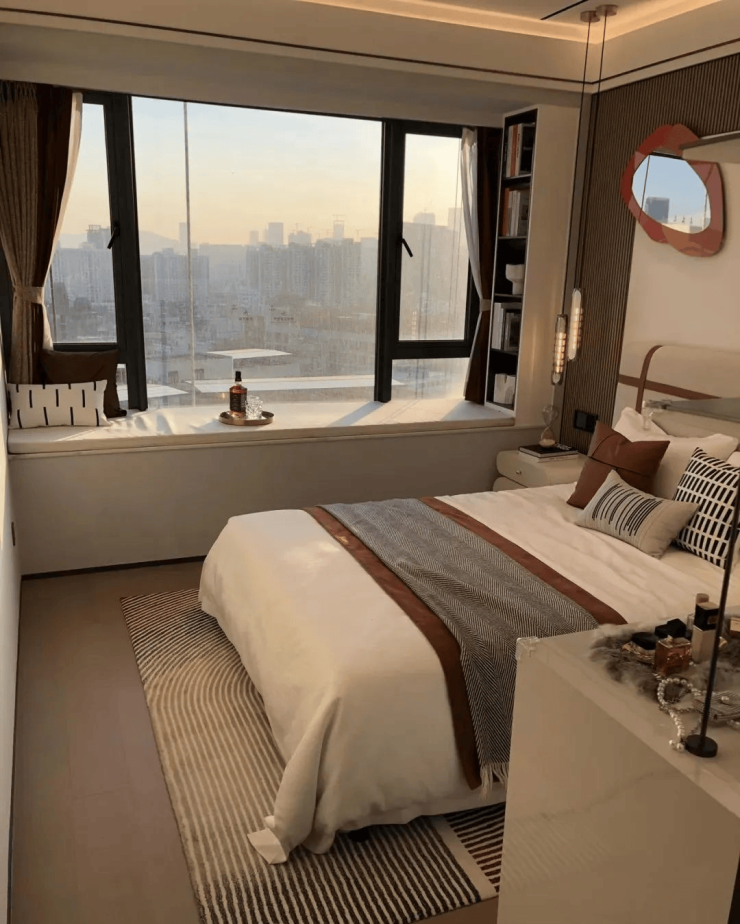 主力户型为建面约90/110㎡的A/B户型,全系采用全尺寸飘窗/转角飘窗和大阳台配置,充分发挥景观优势。