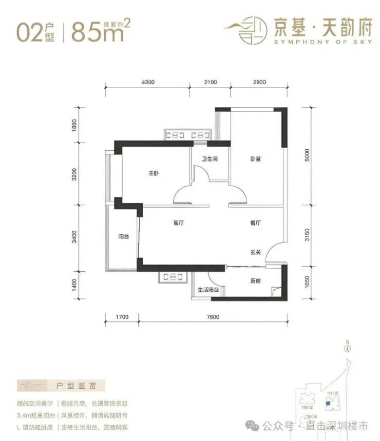 最让人惊喜的是其70-85㎡的二居户型,配置了观景飘窗、明厨明卫、双阳台、大面宽阳台,让有限空间拥有无限可能 。