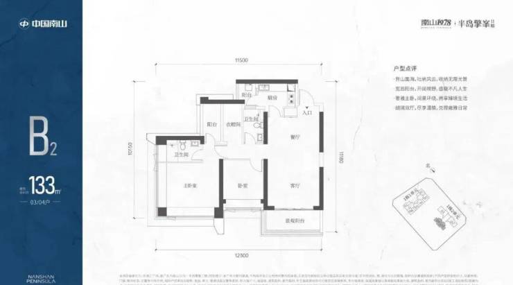 B2有两条腿,分别1-2栋03/04,主朝向西南向,竖厅设计。