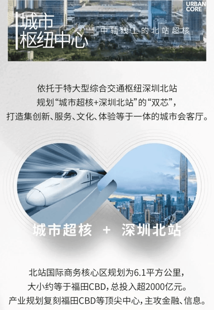 - 交通:地铁4/5/6号线交汇于深圳北站,地铁22号线、27号线建设中,深惠城轨规划中;临近亚洲最大高铁枢纽深圳北站;福龙路、南坪快速、北环大道等“四横四纵”深圳主干道环绕。
