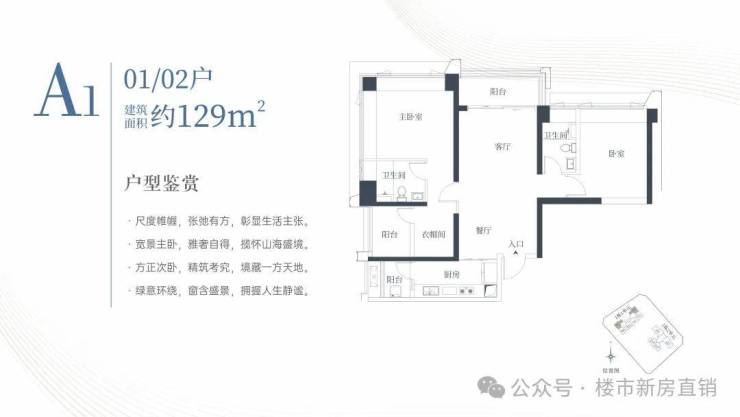 🔹1栋一单元A1、A2户型:面积约为129㎡