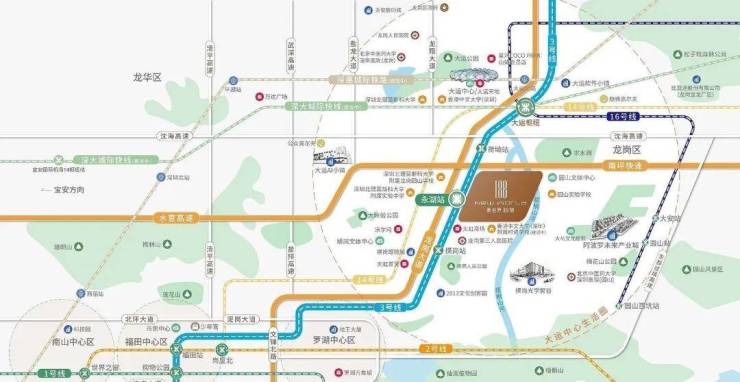 紧邻3号线永湖站,步行约3分钟可达,2站到大运枢纽换乘14/16号线及深大城际;14号线10站直达福田岗厦北,通勤福田/罗湖超便捷。