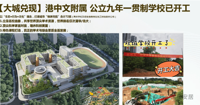 学校配套:项目规划5所幼儿园及3所九年一贯制学校(含72班、54班规模),其中72班制的学校已经确实是港中大附属学校,目前已经开工。根据2025年龙华区学区划分,小学对口观澜中心学校(省一级),初中为观澜二中或龙华第三外国语学校。