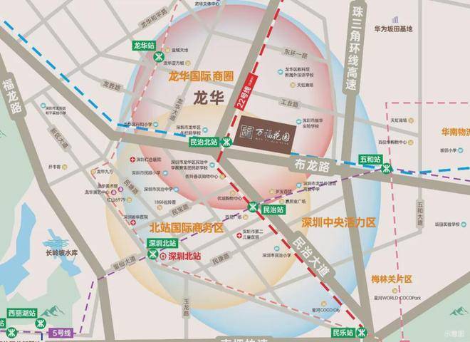距离深圳北站近约2.5公里,同时,又位于龙华国际商圈内,依托时代发展,板块迅速崛起,未来价值不可估量;