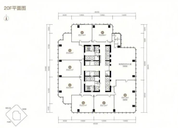 (5-19层底区,20-31层中区,33-51层瑞吉酒店)
