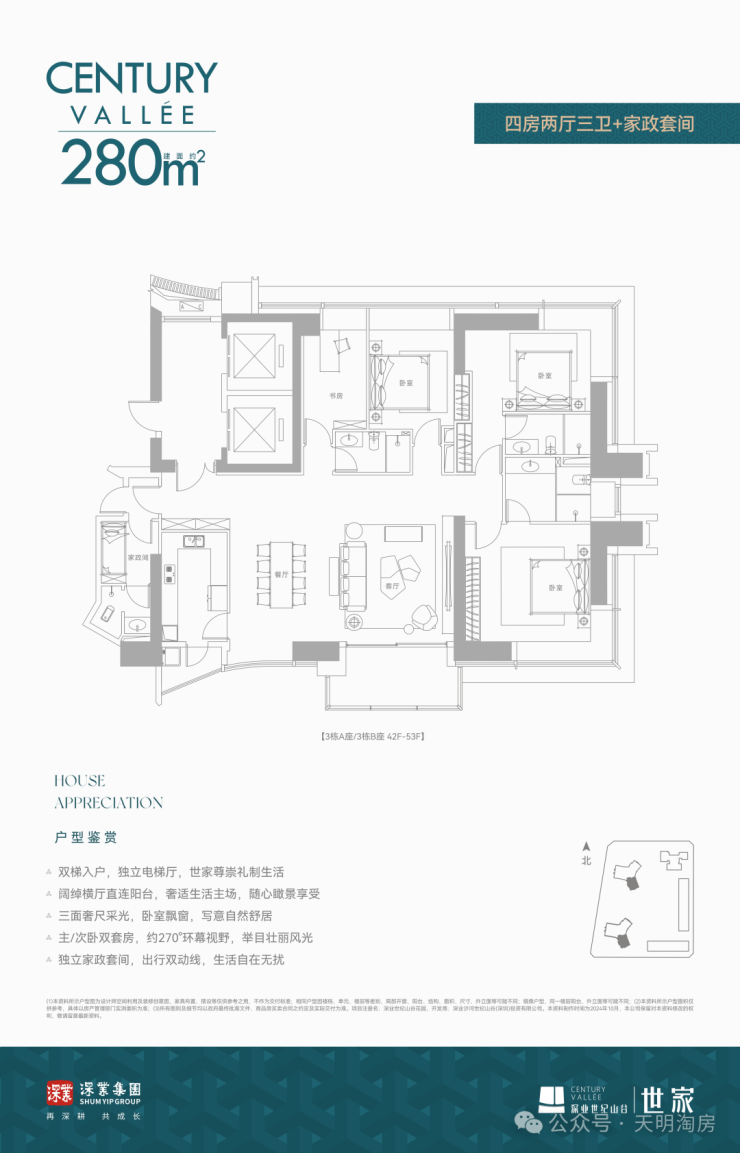 🔸建面约280㎡ 四房两厅三卫+家政套间