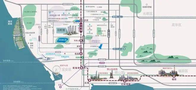 交通:项目紧邻11号线沙井站约650米,前往宝中、南山和福田相对缘,到达科技园需要约1小时,自驾走宝安大道、广深公路或京港澳高速,到达宝中和南山需要约四五十分钟。
