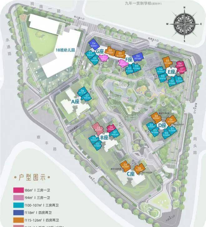 整个小区占地3.5万方,由7栋建筑合围而成,属于中大型小区