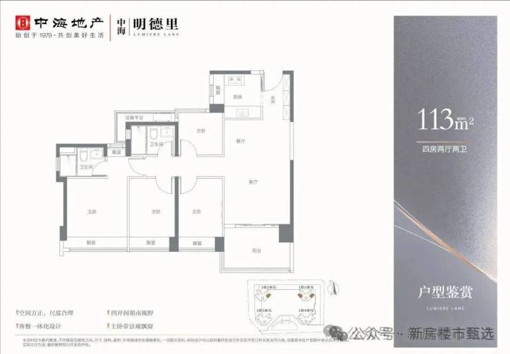 产品面积段:建面约83—113㎡三至四房