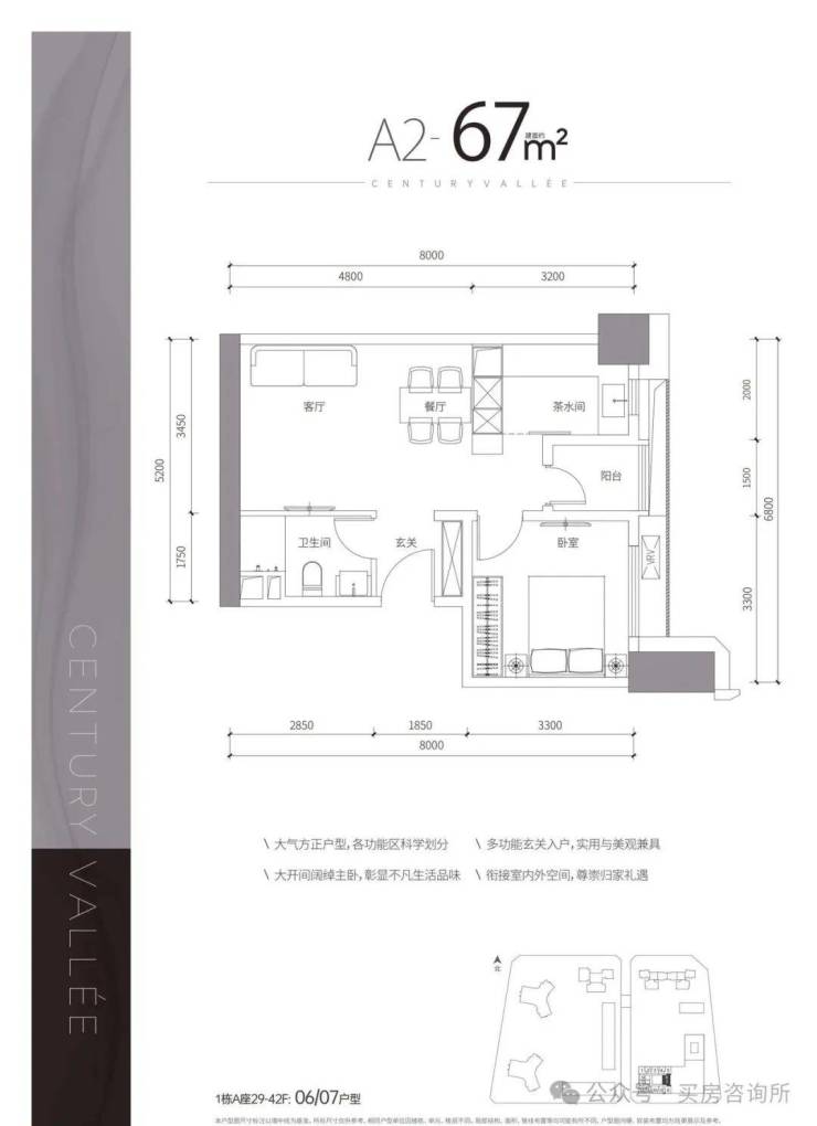 整体分两期开发建设,其中:项目一期东地块包含1栋酒店+商务公寓、1栋保障房、2栋包含一、二单元的住宅;西地块包含2栋高约250米的超高层住宅,另有1栋约50层高的商务公寓。