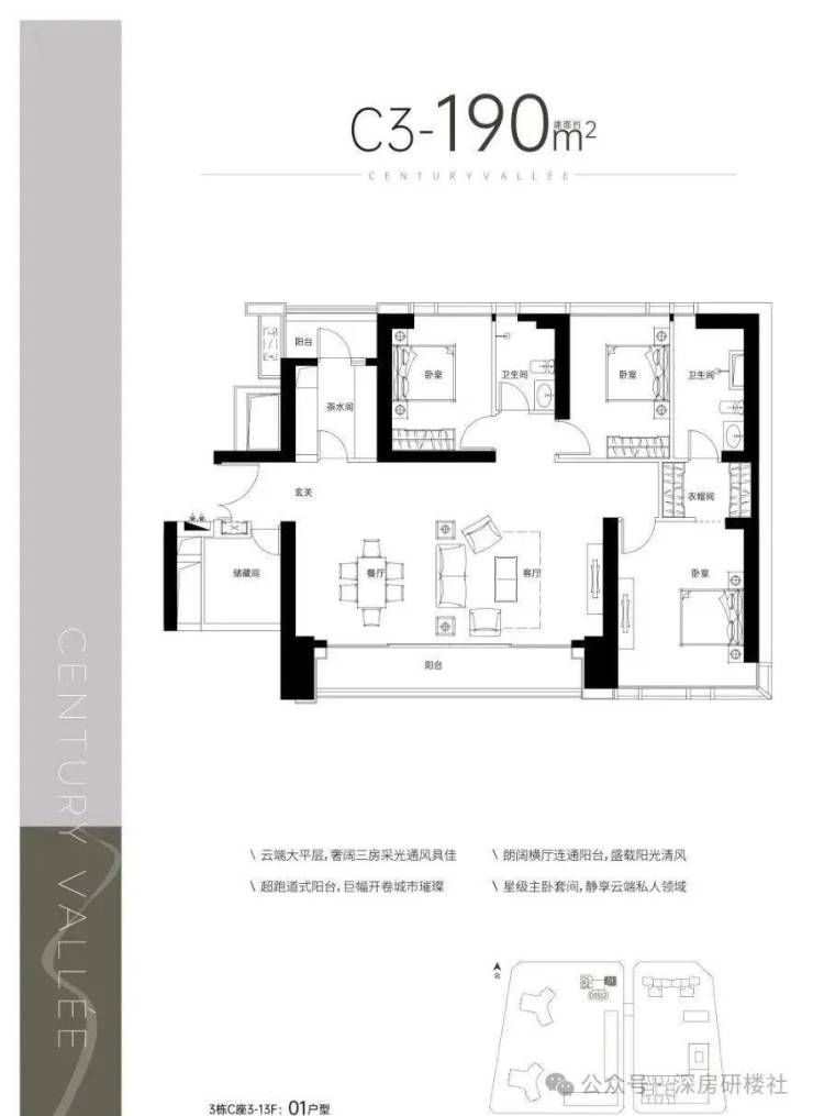 C3户型——建面约190㎡3+1室2厅2阳台