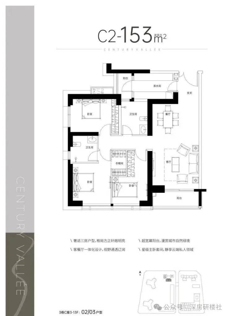 C2户型——建面约153㎡3室2厅2阳台