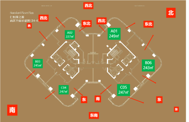 主力产品:建面约227-249㎡大户型