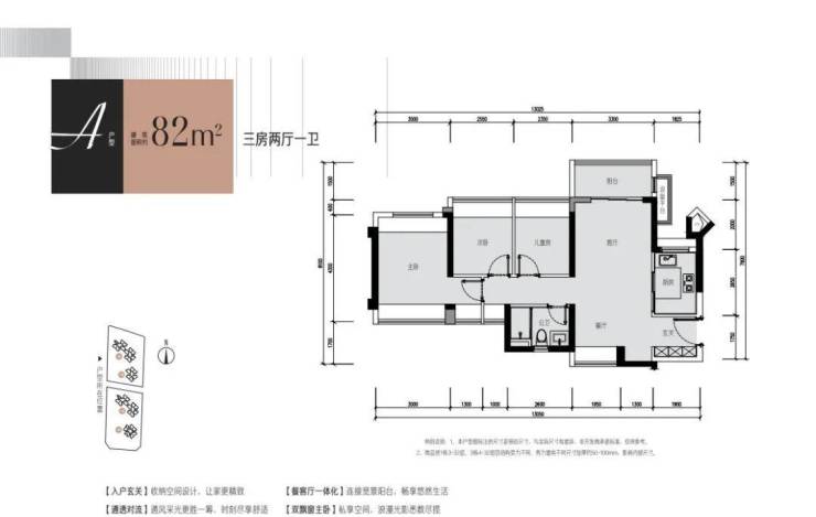 竖厅82㎡的3房2厅1卫,东北向,折后总价300-320万/套