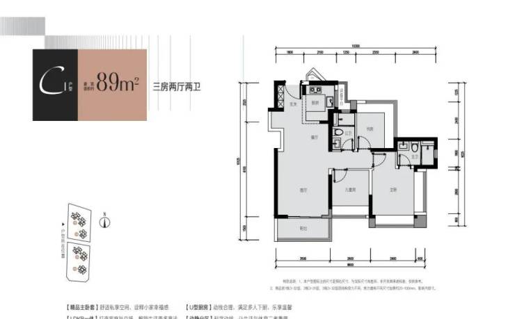 89㎡的3房2厅2卫,西南向,折后总价345-375万/套