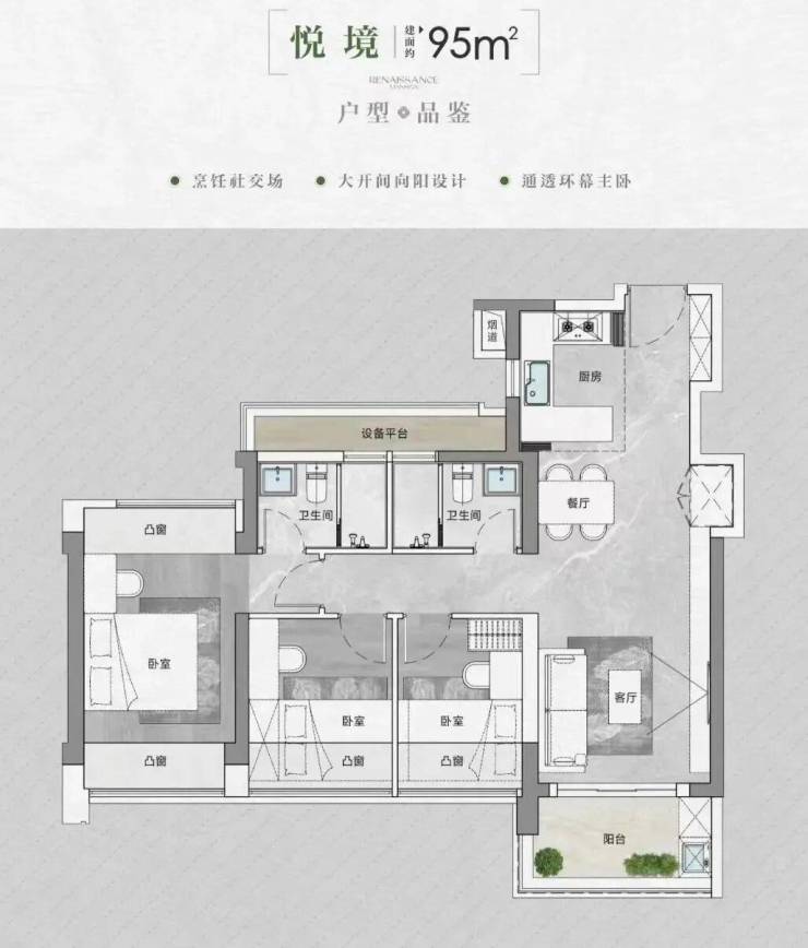 产品方面,中海云启源境打造约90-143㎡新规三、四房,使用率较高。
