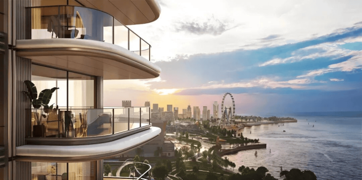 观潮府建筑立面官方设计主题:时代风帆,是项目最具辨识度的城市天际线标志。整体极简现代、无多余造型,挺拔优雅、质感高级,区别于传统欧式豪宅,是属于深圳前海的国际滨海现代立面。竖向金属线条如千帆竞发桅杆,挺拔向上;横向玻璃幕墙随光影流转,与前海潮汐同频共振;白天通透干净、夜晚灯光璀璨,是前海天际线标志性建筑。弧形玻璃幕墙 + 竖向氟碳喷涂铝合金线条 + 大面积铝板幕墙,高端耐久、抗盐蚀耐海风;全圆弧倒角玻璃,柔和流畅,呼应海浪弧度,同时提升观景视野;超大弧形观景阳台,逐层退台设计,立面富有韵律层次。