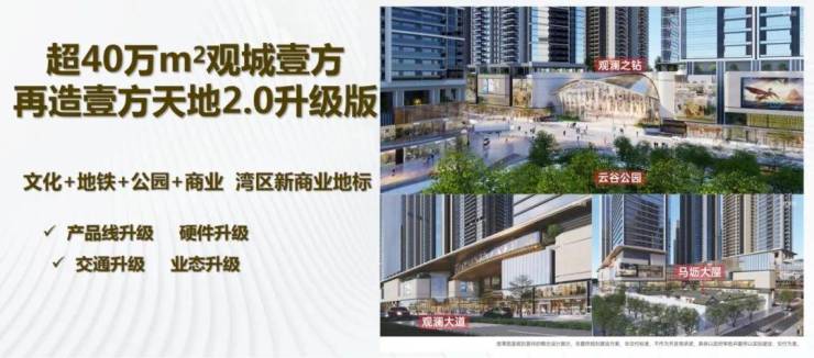 同时,观城还为片区带来了 约 40 万 平方米的 “观城 壹方商业 ”,属于壹方 天地 2.0 版本,也是 继前海壹方城、龙华壹方天地刷新深圳商业版图后,鸿荣源以 “ 公园 + ” 主题 、同时巧妙地 融合 “ 观澜之钻 ” 地标建筑、马坜大屋打造 的城市级别 商业, 涵盖 特色文化商业街区 , 全龄段一站式休闲体验购物中心 。