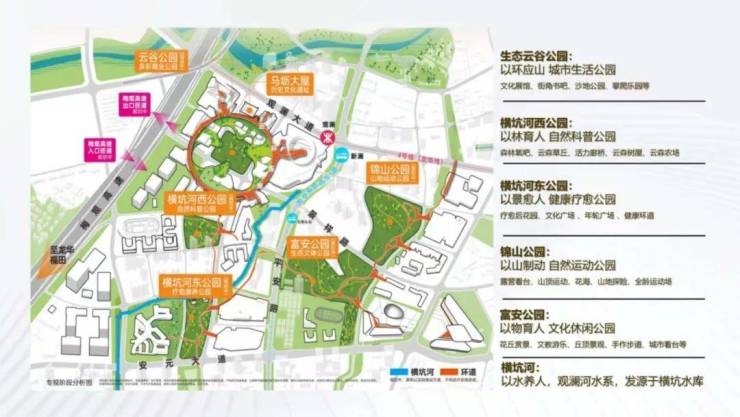 于内,观城则 以 “ 公园之城 立体云环 ”的 规划构思 , 独创规划超 3.6 公里的 空中连廊,串联 5 大公园 、 商业 、 住区、办公、文化休闲、生态康养等多个特色主题环游路线 。这样的 前瞻视角 和 设计理念, 也获得了 国际 ILFA 顶级荣誉以及 2022 年大湾区城市设计大奖 等奖项。