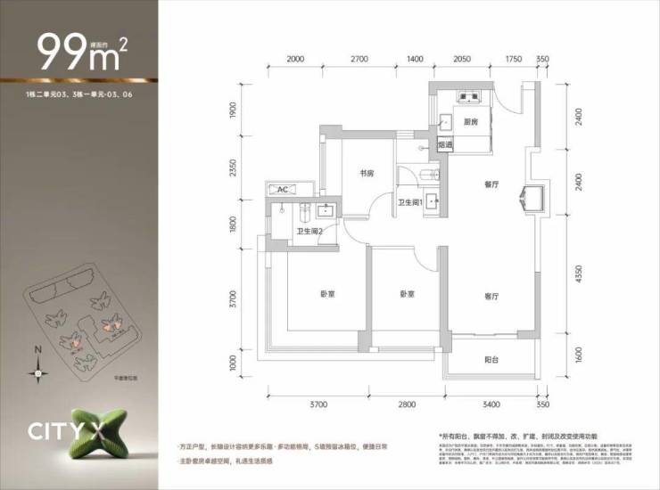 而项目约99平方米的户型,更是一个受市场欢迎的“全南向爆款大三房”户型,整体方正,格局规整,利用率极高,各个功能区域划分清晰,动静分离,动线合理,无论是日常起居还是家庭聚会,都能确保流畅舒适的空间体验。