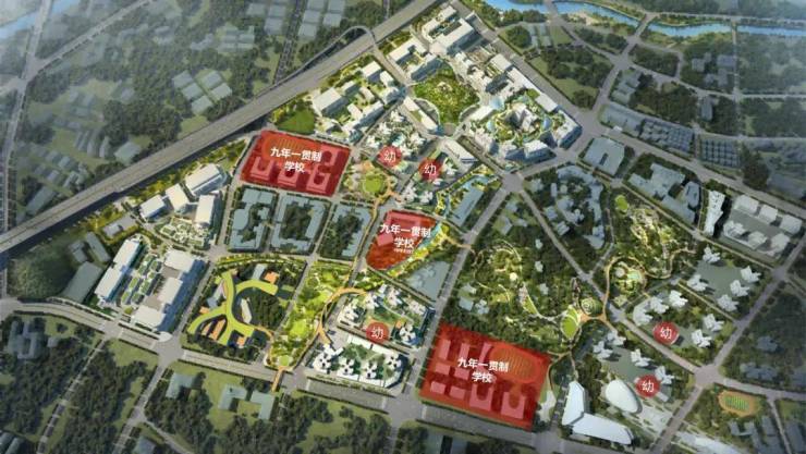 作为一个全生命周期的大城社区,鸿荣源在教育资源的 引进上尤为重视 。中房君了解到,观城项目所在片区共规划有 8 所学校, 其中有一所是华丰地块的学校, 包括 5 所幼儿园和 3 所九年一贯制学校,为业主们提供了从学前教育到初中的“一站式”教育 配套。